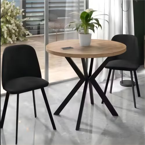 Hot Sale Dining Room Furniture Modern Design MDF Solid Wood Top Round Dining Table with Metal Legs DT-376