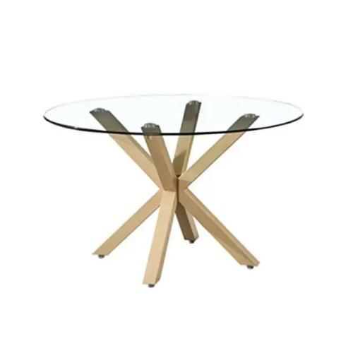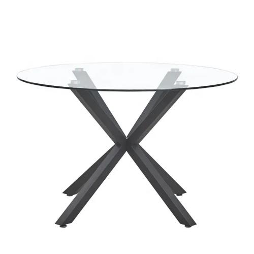 Cross round dining table Clear glass topped with chrome round dining table DT-133