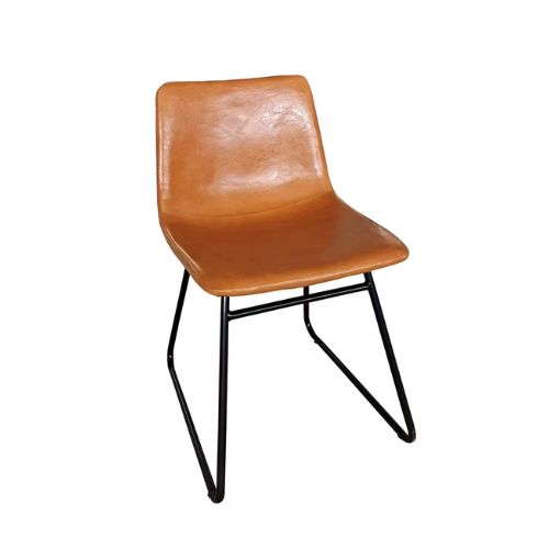 Our modern chair made of PU leather and matel legs. This chair is the perfect fusion of contemporary design and rugged aesthetics, making it a standout piece in any space. The seat of this chair is upholstered with high-quality PU leather, providing a luxurious and sophisticated touch. PU leather not only exudes elegance but also offers durability and easy maintenance, making it a practical choice for everyday use. The smooth texture of the leather adds a touch of refinement to the chair, inviting you to sit back and relax in style. The frame of the chair is crafted from robust metal. This industrial-inspired design element adds a bold and edgy look to the chair, making it a statement piece in any room.