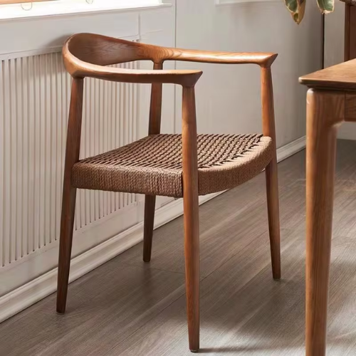 Best-Selling Medieval Solid Wood Walnut Backrest Rope Woven Leisure coffee shop restaurant dining Chair