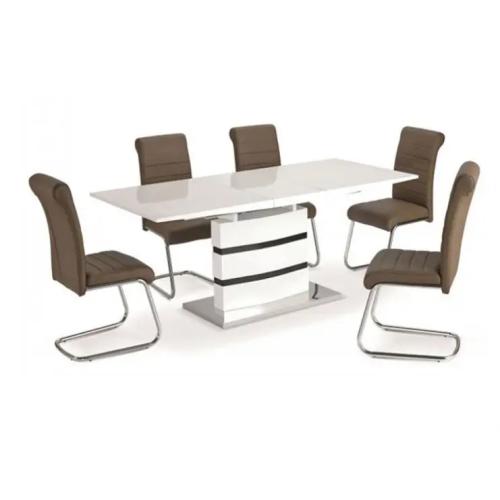 The table draws the eye with a metallic base made of carbon steel, while the top of the MDF material is the definition of upscale elegance. Whether it's having breakfast with the whole family or sipping coffee alone, you'll start your day with this unique set of utensils.