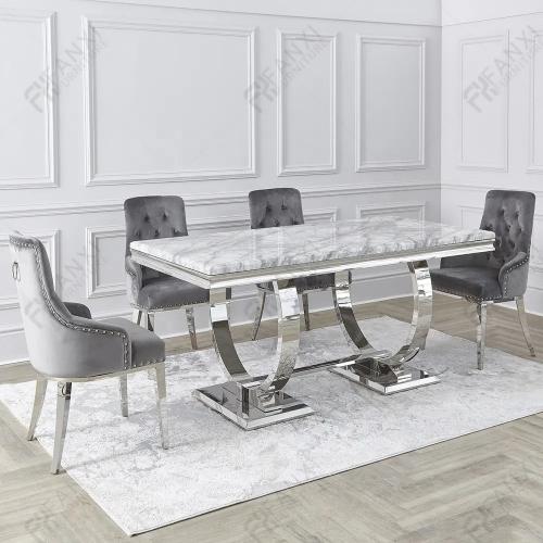 Luxury Metal Dining Room Set Silver Frame grey marble top Dining table set Dining table with 6 810 chairs DT-F100