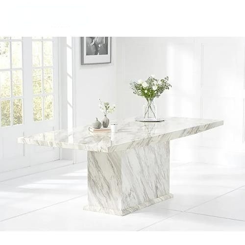 The modern faux marble-topped rectangular dining table is perfect for entertaining family and friends in any smaller kitchen or dining room for luxurious moments.