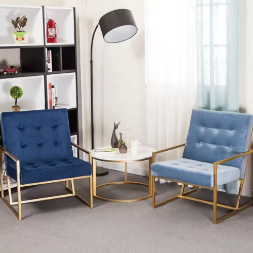 "Velvet,foam,plywood seat board, golden chrome frame&legs"