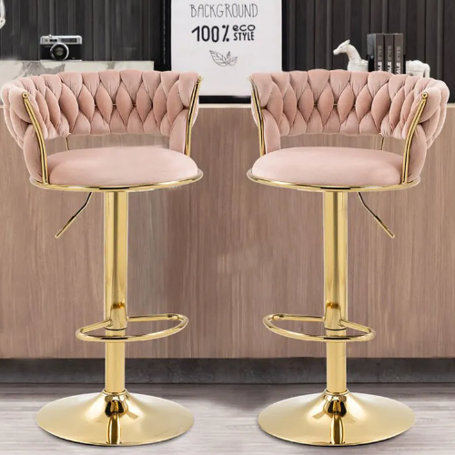 Modern Luxury Lift Rotary Hotel Cafe Counter Frame Velvet Bar Chair Stool Swivel Metal Commercial Furniture Kitchen Stools BS-420W