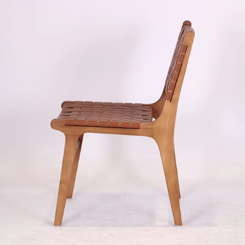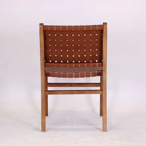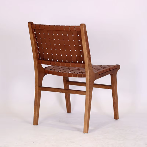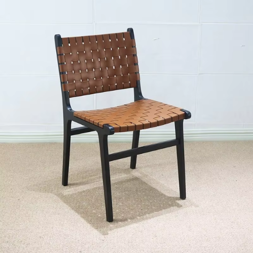 Modern design restaurant coffee shop wood leather seat wood frame rope backrest dining chair