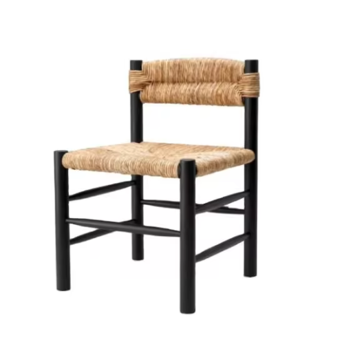 Hot selling restaurant cafe chair retro style solid wood and rattan dining chairs for dining room