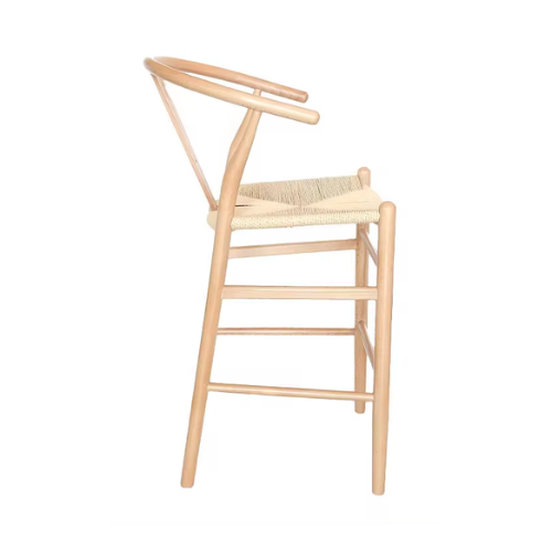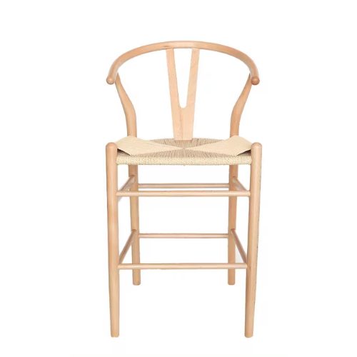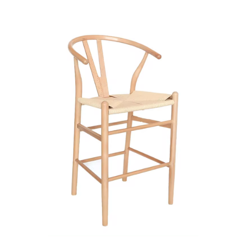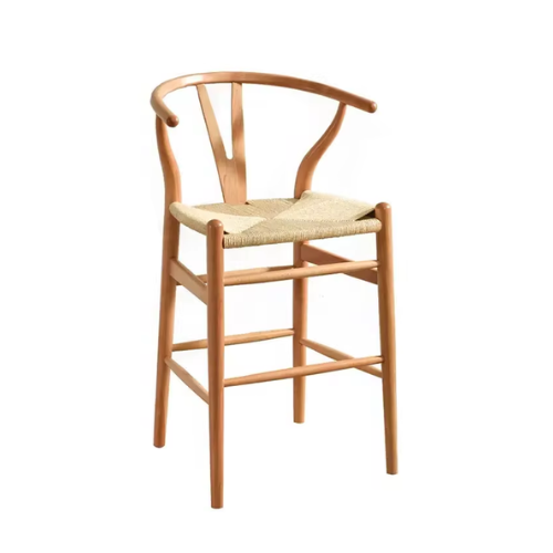 Wholesale high quality Factory Rope Woven Seat Brown Wooden Wishbone Bar Stools Dining Bar High Chair With Arms