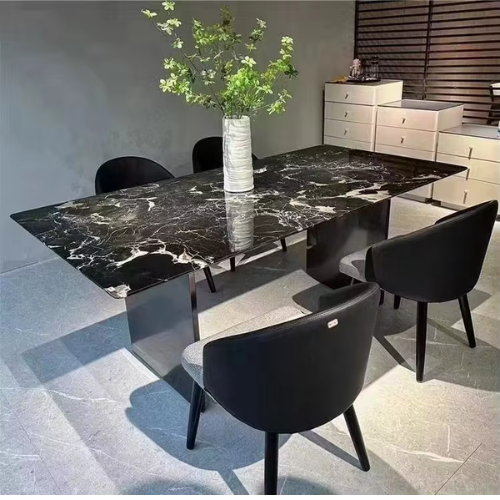 The dining chairs feature a blend of mid-century and contemporary styles that updates a dining space with modern charm instantly.