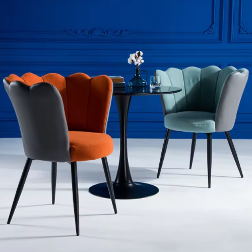 Nordic modern minimalist home velvet casual light luxury metal foot velvet dining chair BS-340