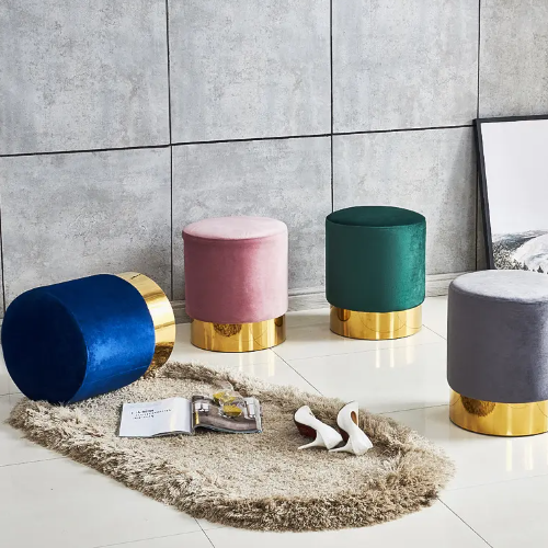 Gold Finish circle ottoman foot stool Velvet Upholstered Seat Living Room Round ottoman stool FS-18
