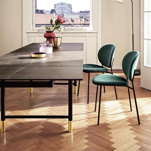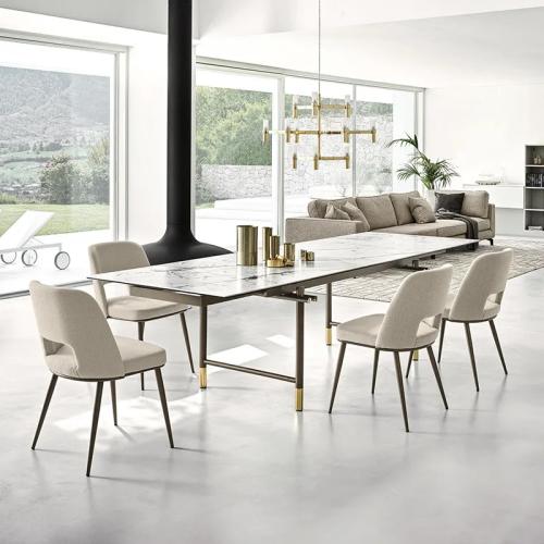 The new design extends the rectangular ceramic dining table with powder-coated black legs DT-383