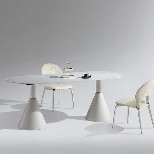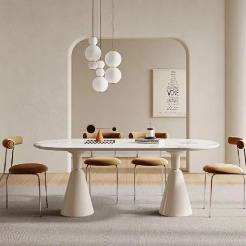 High quality custom cream Oval table Modern Apartment Light luxury restaurant dining table and chair combination DT-391