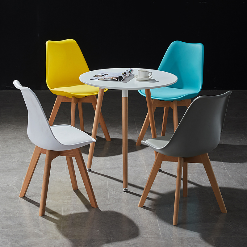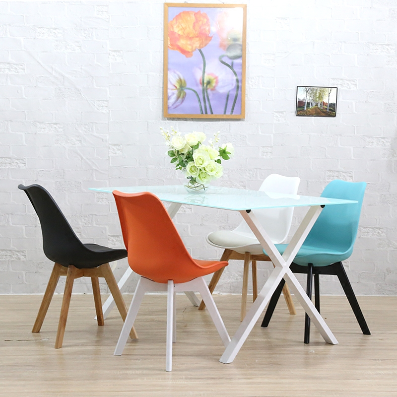 PP back,Plastic seat with cusion, chrome steel Wooden legs