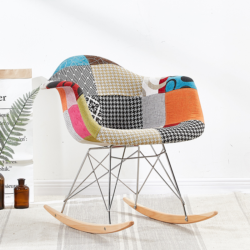 Modern Patchwork Upholstered Rocking Comfortable Fabric Lounge Chair with Metal Legs SC-021