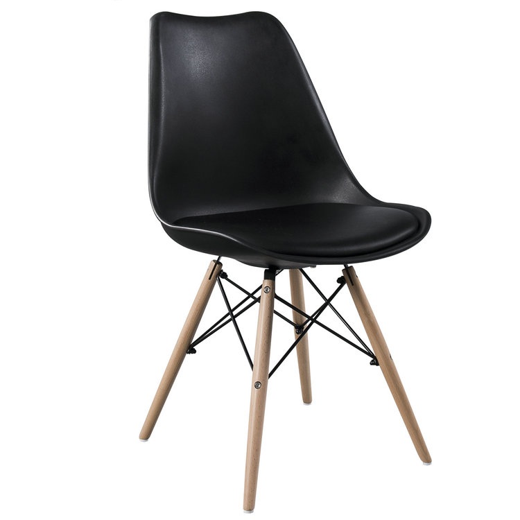 PP back,Plastic seat with cusion, chrome steel wood Legs