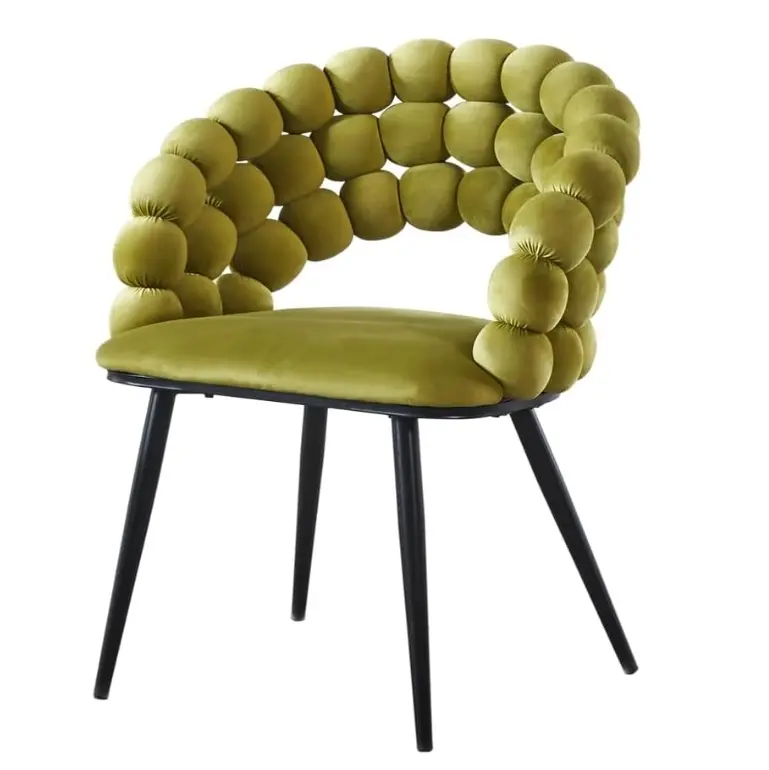 - Stylish: Finished in gold, this dining chair will easily enhance your dining space with a luxury feel. The round padded seat cushion is velvet upholstered, creating a comfortable sitting experience while adding modern appeal to your kitchen.